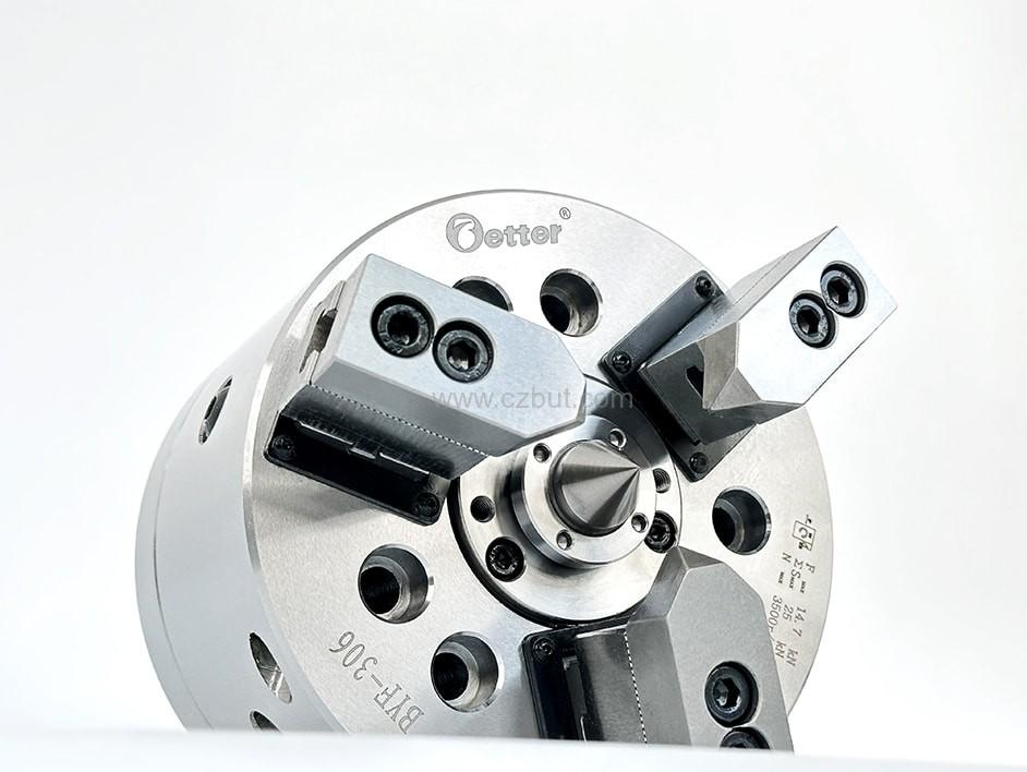 ? 軸類加工專用夾具,卡爪對工件具有后拉和補償式夾緊的功能,(該卡盤夾持力提供加工時的扭矩和后拉力),對中心的補償量為5mm
