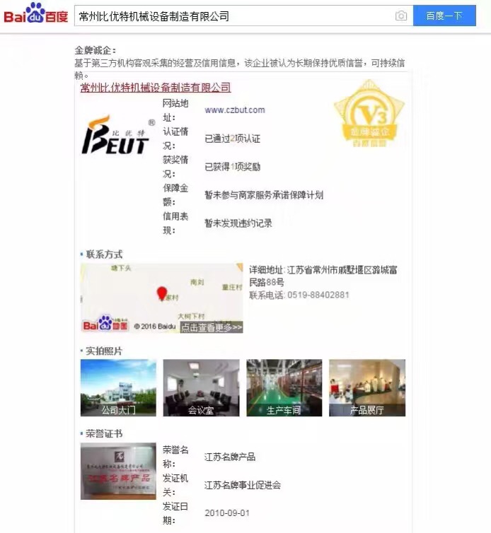 除了中國機(jī)床商務(wù)網(wǎng)之外,為了擴(kuò)大影響范圍,常州比優(yōu)特還在多個行業(yè)相關(guān)網(wǎng)站進(jìn)行注冊宣傳,如阿里巴巴、中國數(shù)控機(jī)床網(wǎng)、百度等。現(xiàn)在,打開網(wǎng)頁,輸入“常州比優(yōu)特機(jī)械設(shè)備制造有限公司”,企業(yè)相關(guān)信息就可以被網(wǎng)友輕松獲取。而多平臺的布局也讓常州比優(yōu)特網(wǎng)羅了大批有不同平臺偏好的客戶。“網(wǎng)銷只是手段,誠信經(jīng)營才是硬道理”,對于常州比優(yōu)特,網(wǎng)絡(luò)營銷可以讓客戶簡單、直觀、即時地了解公司和產(chǎn)品狀況,但企業(yè)發(fā)展還得靠自身實(shí)力。正是有這樣的認(rèn)識,常州比優(yōu)特逐步贏得了客戶和平臺的認(rèn)可,先后獲得“百度信譽(yù)金牌誠企”稱號、中國機(jī)床商務(wù)網(wǎng)“頂級會員企業(yè)”認(rèn)證等,成為行業(yè)內(nèi)極具競爭力的創(chuàng)新型企業(yè)。